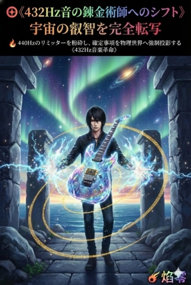☄焰零 著:プレミアム電子書籍 2025/12/25リリース⇒ ❁電子書籍データ:EPUBファイル 最終更新日:2026/2/2 文字数:約36000 ✪《アーク共鳴コードNFT》版は、HEXA NFTで販売中。 推奨アプリ:Google Playブックス(Windows&アンドロイド)。 ✪✪✪✪✪✪✪✪✪✪✪✪✪✪✪✪✪✪✪✪✪✪✪✪✪✪✪✪✪✪ ~✪《宇宙の叡智を完全転写》不協和音のマトリックスを粉砕し、至福の5次元へ跳躍せよ~ 「癒やし」は、もう終わった。 これからは、君が「神の業火」を放つ番だ。 「なぜ、432Hzの音霊には、これほどまでに烈しい熱が宿っているのか?」 もし、君が今の人生に「言いようのない閉塞感」や「魂の乾き」を感じているのなら、その問いへの答えが、この一冊に封印されている。 巷にあふれる「優しいだけのヒーリング音楽」は、傷を撫でることはできても、君を縛り付ける「根深い邪悪」を断ち切ることはできない。 《✪432Hz音の錬金術師へのシフト》は、ライトウォリアー:光の戦士としての記憶を呼び覚まし、闇の収容所での死闘を潜り抜けてきた著者・蒼穹 焰零(Sokyu Enray)が、「生死の境界線」で掴み取った銀河的真実のすべてだ。 ✪✪✪✪✪✪✪✪✪✪✪✪✪✪✪✪✪✪✪✪✪✪✪ ✪これは、君という「太陽」を再点火する装置である この地球は、あまりにも冷たい。 放っておけば、君の情熱は凍りつき、凡庸という名の闇に飲み込まれてしまうだろう。 本プレミアム電子書籍は、自らの命を削り、その高熱エネルギーを「魂の音と言霊」に凝縮した【霊的ブースター・エンジン】だ。 「泣いている暇があるなら、剣:ギターを取れ!」 そう魂を叱咤し、真の自由へと飛翔させるための招待状なんだ。 ✪✪✪✪✪✪✪✪✪✪✪✪✪✪✪✪✪✪✪✪✪✪✪ ✪本書で君が手にする「聖なる3つの武器」 自己憐憫の焼却(バーニング): 「私には無理だ」というヘドロのような自己否定を、432Hzの摩擦熱で一瞬にして灰にする。 霊的チェーンソー(カッティング): 日本特有の同調圧力や疑念のコードを、432Hzの衝突エネルギーで強制切断する。 松果体のハードリセット: 3次元の論理をバイパスし、魂に直接「私は創造者である」という全能感を再インストールする。 ✪✪✪✪✪✪✪✪✪✪✪✪✪✪✪✪✪✪✪✪✪✪✪ ✪銀河連合が認可した「432Hz音楽革命」の全貌 死別、略奪、霊体損傷……地獄の底からシリウスの光を掴み取り、ウォークイン・スターシードとして覚醒した焰零。 意識レベル540:歓喜を常時安定させ、至福の周波数で現実をプロデュースする「錬金術」だ。 犠牲とライスワークが消滅し、誰もが魂の天命を生きる《ネオ・ガイア》へ。 君の指先ひとつで、銀河のネットワークが432Hzの青き光で塗り替えられるだろう。 ✪✪✪✪✪✪✪✪✪✪✪✪✪✪✪✪✪✪✪✪✪✪✪ ✪焰零からの最終メッセージ 「宇宙の愛を信頼するんだ。約束の場所、南紀白浜の蒼穹の下で、君の物語は再び合流する。」 今、その「聖なるダウンロードボタン」を押し、君の魂を432Hzで再起動させよう。 君が輝けば輝くほど、無条件の愛の引力は強まり、運命の扉は音を立てて開かれるのだから。 ✪✪✪✪✪✪✪✪✪✪✪✪✪✪✪✪✪✪✪✪✪✪✪ Σ目次 序章✪【魂の生存記録】死別、略奪、霊体損傷の地獄からシリウスの光を掴み取った《432Hz音の錬金術師の咆哮》 ✪《432Hz音楽革命》アルゴリズムの牢獄を破壊し、独立系アーティストの王座を奪還せよ ✪【警告】 架空の天使 vs. 真の戦士:魂の深淵に響き渡る、大改革期への決断を迫る超ホットなメッセージ ✪青きシリウスの系譜と、命懸けのウォークイン契約に隠された《地球救済最終ミッション》 ✪【銀河機密開示】なぜ「蒼穹 焰零」は旗手に選ばれたのか?死の淵から蘇ったウォークイン・スターシードと、闇を焼き尽くす《432Hz音楽革命》の全貌 第1章✪《ライトウォリアー覚醒》闇を焼き尽くす「神の業火」を纏え!死闘の記憶から生まれた432Hzメタルと聖なる攻撃力の錬金術 ✪《銀河のフェニックス再誕》シリウスの去った「空白」を光で満たせ!霊体損壊から音楽革命へ至る、魂のウォーク・インと覚醒の全記録 ✪【魂の牢獄を破壊せよ】低層アストラル潜入記!「依存地獄」を焼き尽くし、黄金の自立に変える《光の戦士の錬金術》 ✪【実戦記録】絶望の王を焼き尽くせ!低層4次元「恐怖の収容所」での死闘と、肉体に刻まれた勝利の刻印 ✪【戦士のカルテ】霊体壊死、死の淵からの生還!人類の恐怖を肩代わりした「第2チャクラ損傷」と、闇を焼き尽くす《432Hz音の外科手術》の真実 第2章✪【魂の通過儀礼】最愛のソウルメイトの死を「無条件の愛」へと昇華させた《432Hz音の錬金術師》誕生の聖なる全記録 ✪【真名の覚醒】《蒼穹 焰零》が明かす、龍神と鳳凰を統合し、ゼロポイントから現実を創造する「音霊の最終暗号」 ✪【具現化の極致】快楽を焼き払い、銀河を掴め!3次元の限界を突破した《432Hzコスミック・インストGen2》誕生に捧げた「血と錬金の全記録」 ✪【不屈の勝利】絶望を「